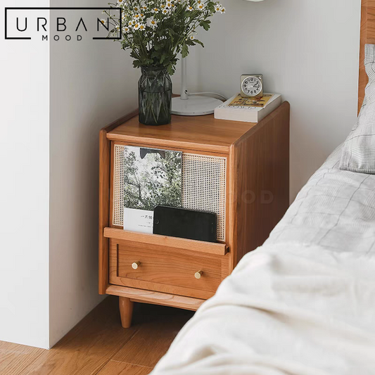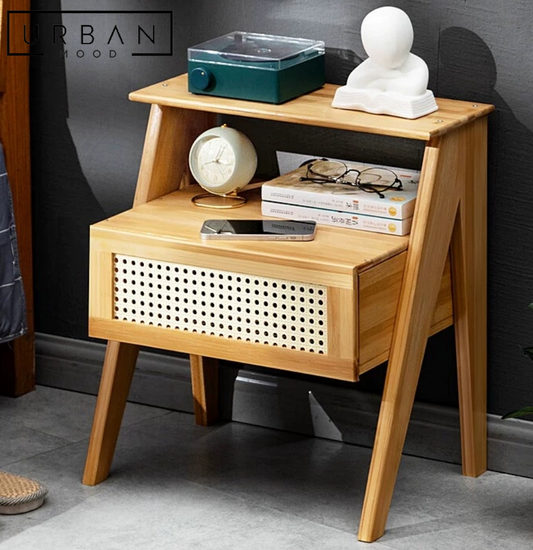 PATRON Herringbone Acacia Solid Wood Bedside Table