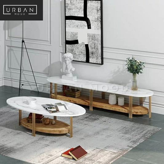 ALEX Coffee Table Oval and Round Italian Minimalist Luxury Marble Rock Board