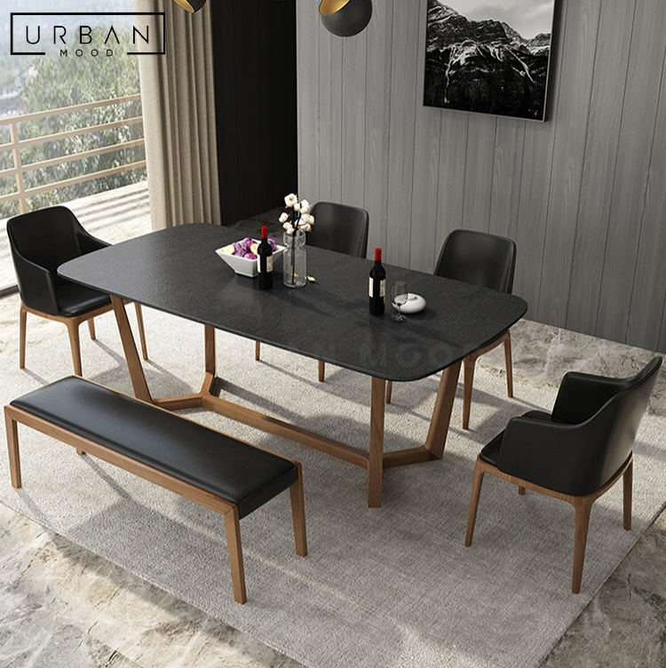 Featuring curved corners and an ash wood frame in a rich walnut finish, our BARRY dining table is crafted with a sintered stone surface that boasts exceptional qualities like scratch-resistance, heat-resistance, and stain-resistance, ensuring lasting beauty for years to come. The curved corners of the table ensures your dining space is kept child and pet friendly, while the high quality materials and timeless design ensure your dining ensemble becomes the centerpiece of gatherings in modern, rustic, classic, or industrial settings.