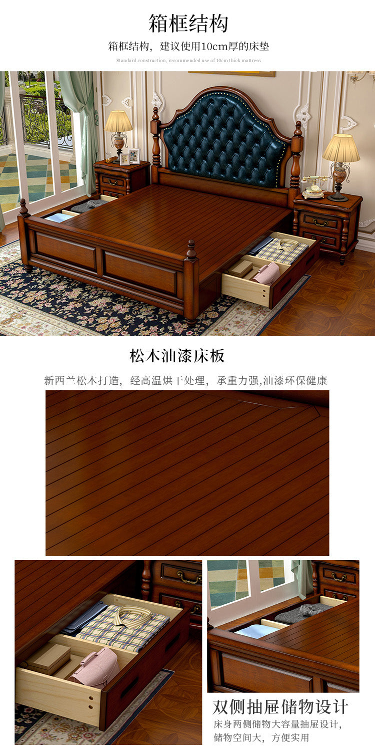 BOSTON HILTON American and European Full Solid wood high box storage bed, Air Lift and Drawer Box Option