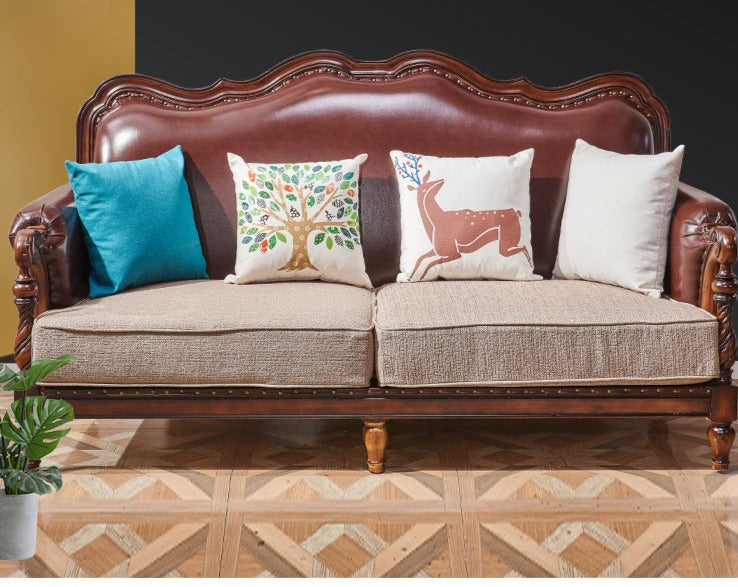 BOSTON HILTON American Solid Wood Sofa 1+2+3 Armrest Leather Cloth Seat