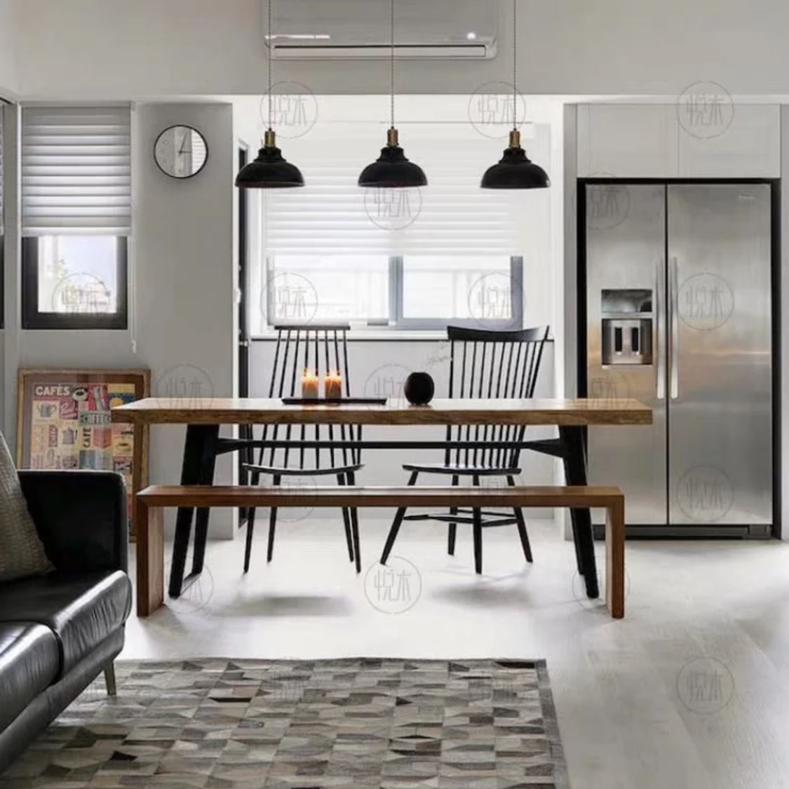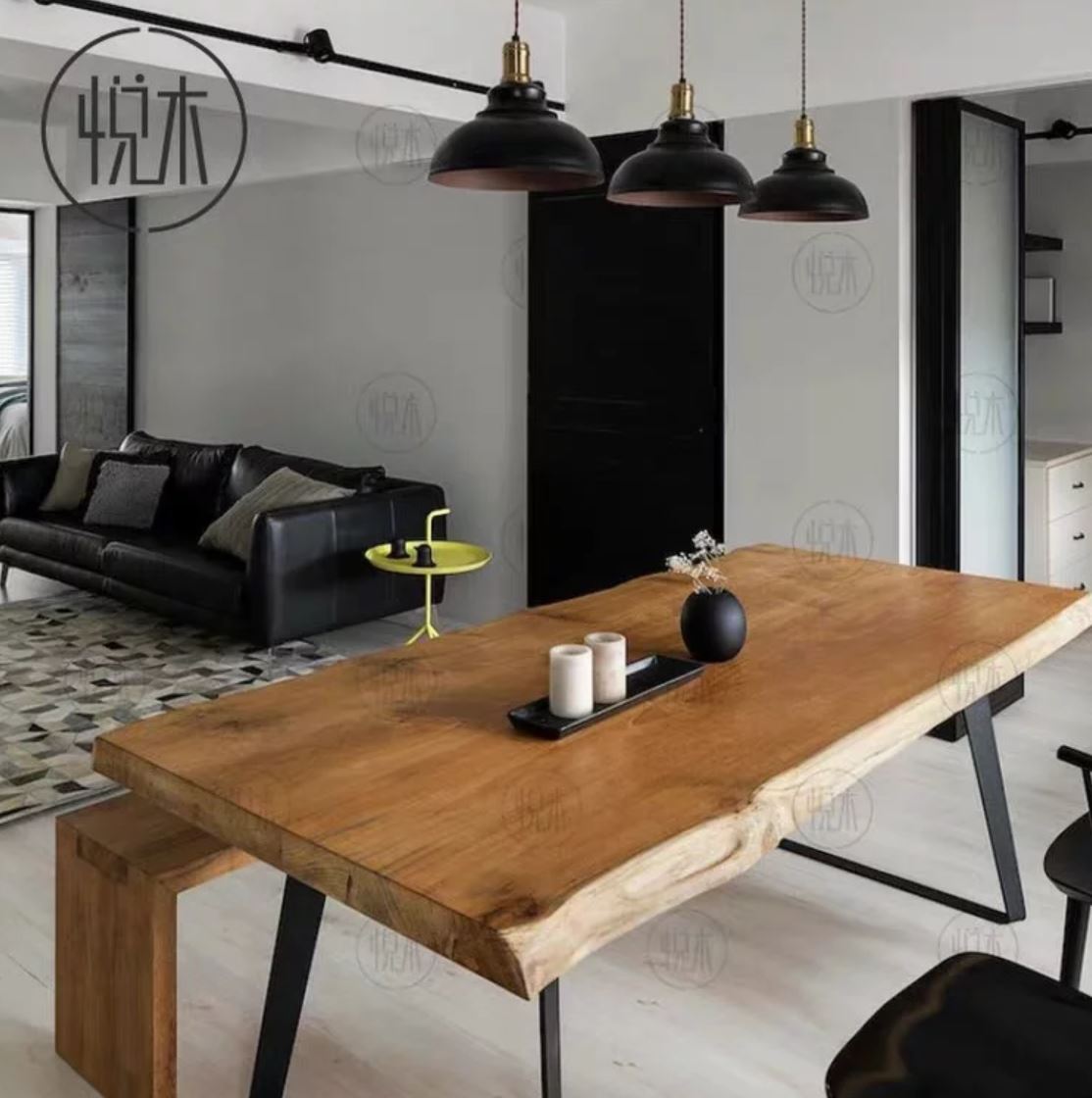 The Luke dining table is one of our most revered and popular designs, with its thick joints of solid pine wood and live edge, complete with a pair of sleek powdercoated steel legs. Pair the table with tallback caged dining chairs to complete the rustic or industrial look.