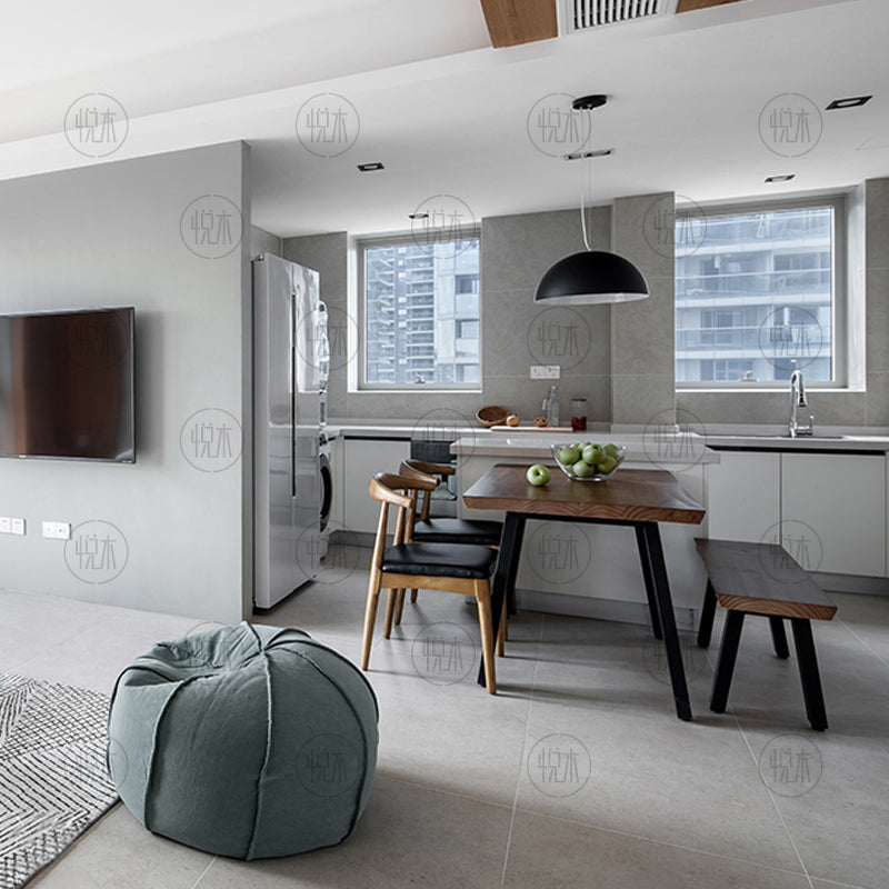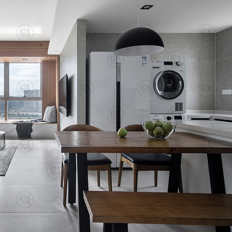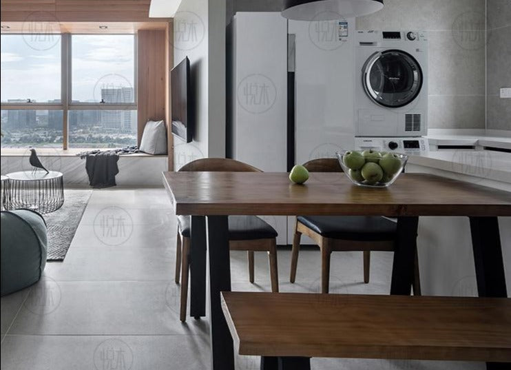 - COOPER Nordic Retro Wrought Iron Solid Wood Dining table and chair, bench combination . Fit modern minimalist theme home, restaurant, cafe, hotel and villas