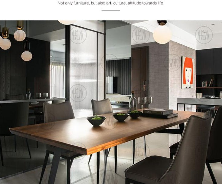 - EMMETT Dining Table Solid Wood Nordic Style Retro wrought iron leg with solid wood top dining table . Design in simple modern style. Come in rectangular shape great for dining table, home, restaurant and as a conference table.