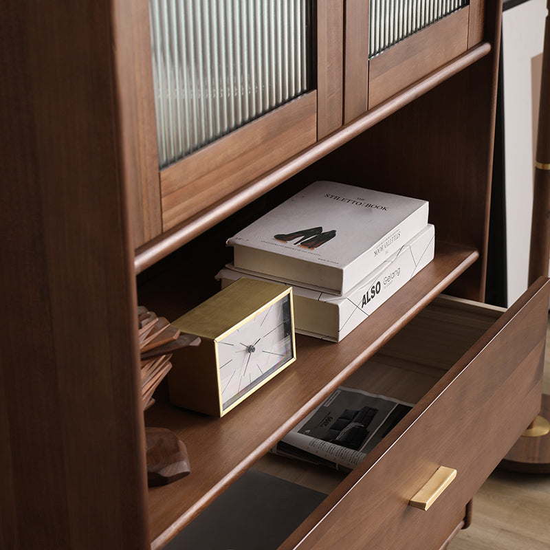 EZRA Glass Display Hutch Cabinet American Pine Solid Wood cabinet bookcase suit perfectly into any minimalist modern , industrial or mid century colonial living room, hall way entery area or have it blend simply into any modern environment that need additional storage as a bookshelf, rack display for children's study or office filing as a display or shelving with doors.