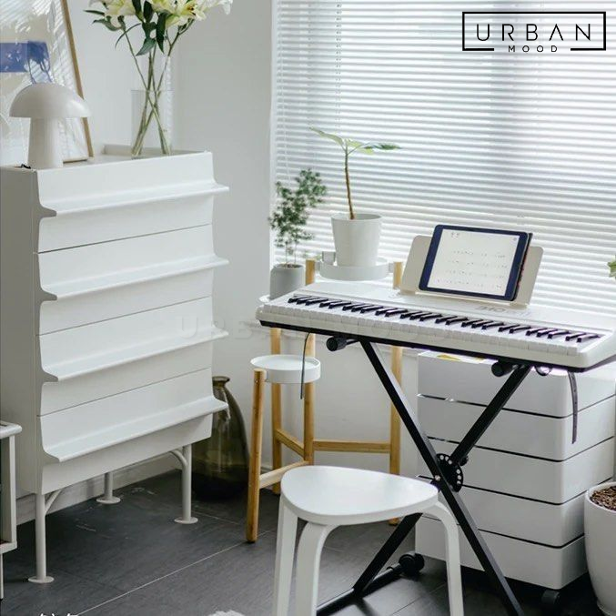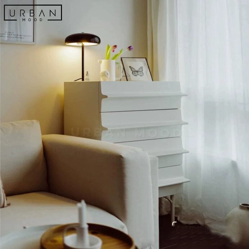 An unassuming yet well-thought out design, out FORJ chest of drawers features an elongated drawer handle that seamlessly extends from the drawer door. Thin metal legs elevate its design, lending an air of sophistication. Available in a spectrum of matte finishes, this versatile piece will complement any modern, minimalist, Scandinavian or hygge inspired decor. Each drawer seamlessly glides, revealing ample storage for your linen or office essentials. Whether placed in the living room, bedroom, play room, or office, this accent piece will add a touch of class.