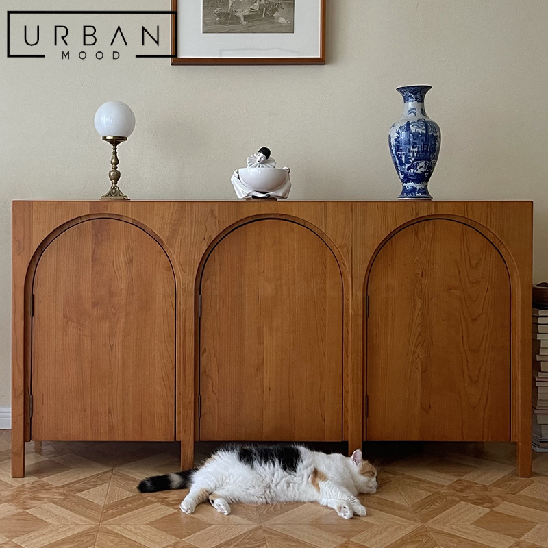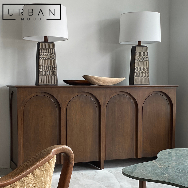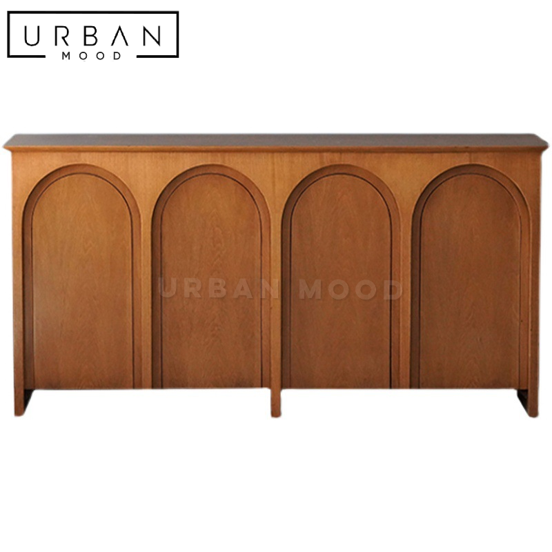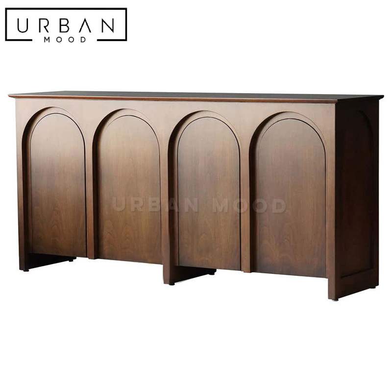 Add a touch of timeless sophistication to your hallway or living room with this intricately crafted hallway console crafted from pine wood and finished in a matte maple or walnut stain. Embossed arches reminscent of medieval archiecture adorn the facade, adding a mid century accent to any hallway or living room. Pair the table with our BETHEL distressed mirror for a complete classic look.