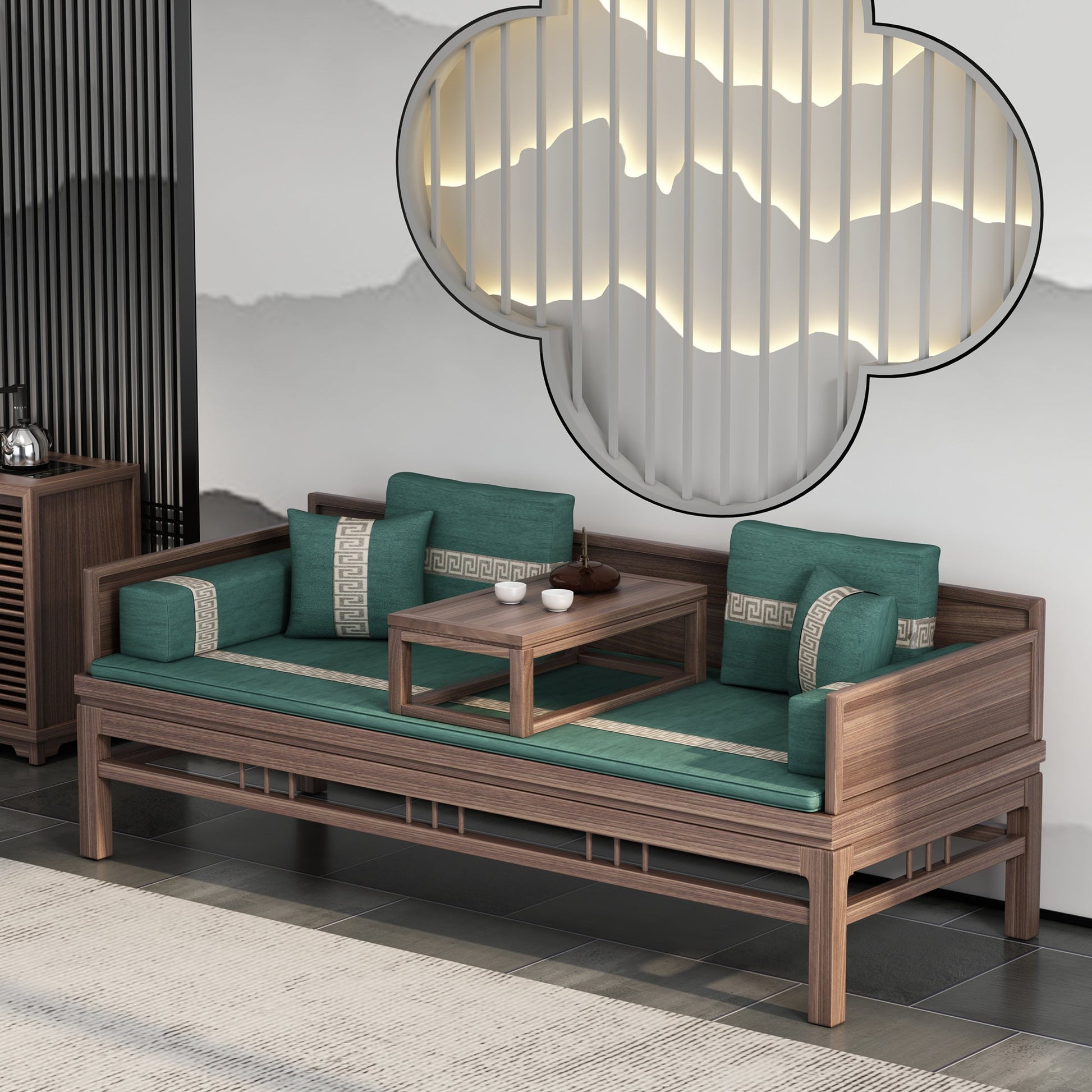 INGRID SHERATON Daybed Classic Solid Wood Sofa Bed. Made from old elm wood the Arhat day bed with tea table combination, bring simple elegant solid wood sofa into any home and apartment living room.