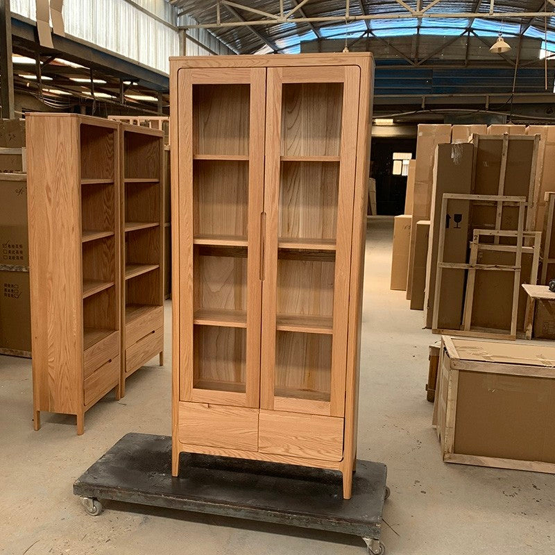 - KAYDEN All solid wood glass display cabinet bookcase with 2 solid door . Can be use for display of your precious or as a bookcase storage. The simple modern clean line bring out the best in nordic sandinavian style. Eco friendly nordic environmental process production.