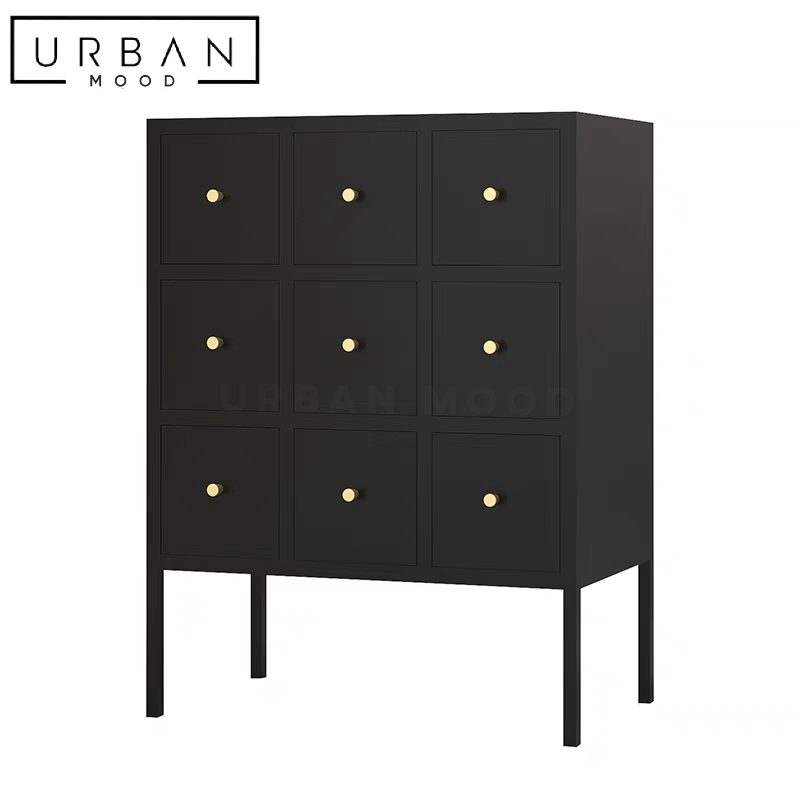 Add a splash of colour to your entryway or bedroom with our MAILER chest of drawers that doubles up as a sideboard. Featuring 9 square drawers for your organisational needs, this storage unit provides ample space for you to organise your clothes or stationery by category. Constructed from reinforced steel in a matte finish, this slim cabinet comes in several bright and cheery colours to complement your modern or eclectic space.