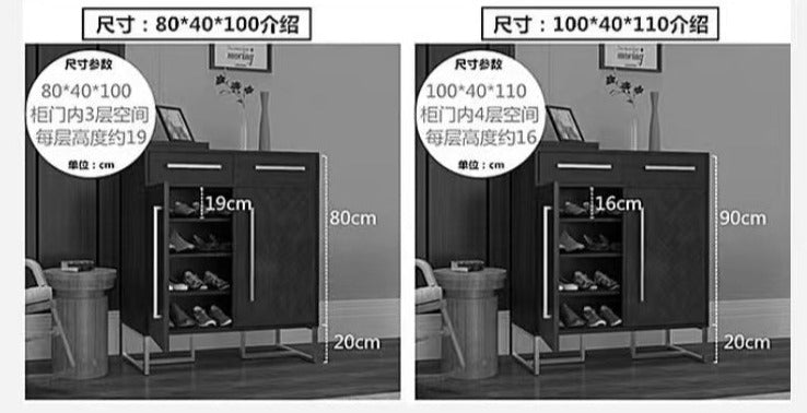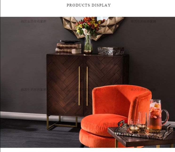MIRIAM Herringbone Buffet Sideboard Cabinet Solid Wood for Cloth, Shoe Cabinet