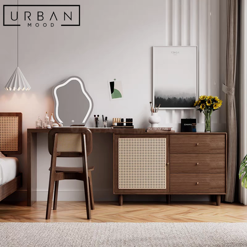 A versatile and multifunctional design featuring a smooth matte finish with beveled edges, our MOMENT vanity table doubles up as an office desk or study table with its spacious chest of drawers. Rotate the table to form an L shape for your compact home office space, or extend it fully to utilise the chest of drawers as a TV console in your bedroom. Choose from 3 colours to complement your modern, minimalist, or rustic interior style.