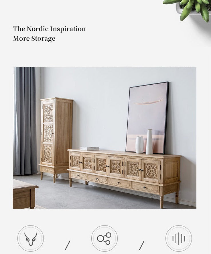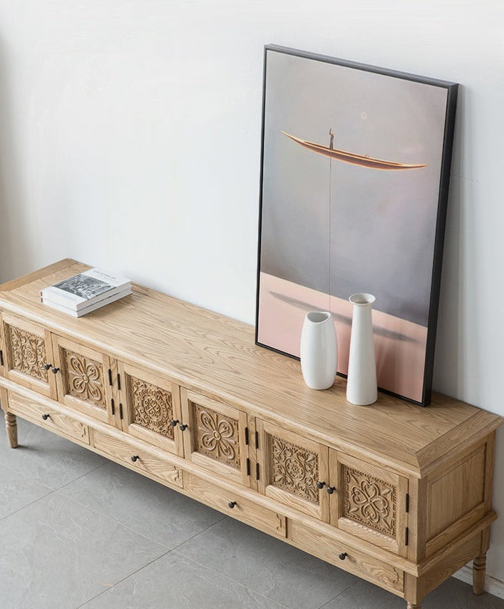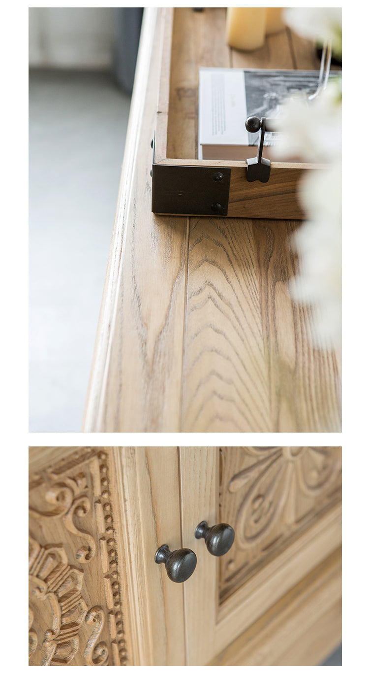 SKYLAR French Moroccan Buffet Cabinet Retro Rustic Solid Wood Carved for TV and Storage