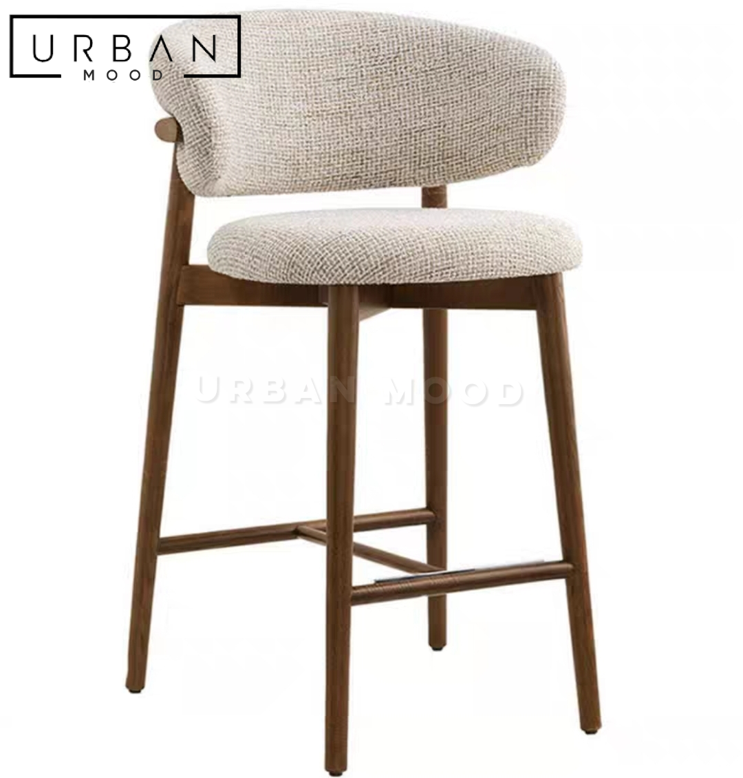 Crafted from high-quality materials with comfort and durability in mind, our STRATA bar stools feature a wide curved backrest that envelops and supports your frame while ensuring utmost comfort with plush fabric upholstered seats. Held together by a solid pine wood frame, this bar chair adds a touch of contemporary glamour to any kitchen island or bar set up. Choose between cream or grey fabric to complement your modern, minimalist, or Japandi styled interior.