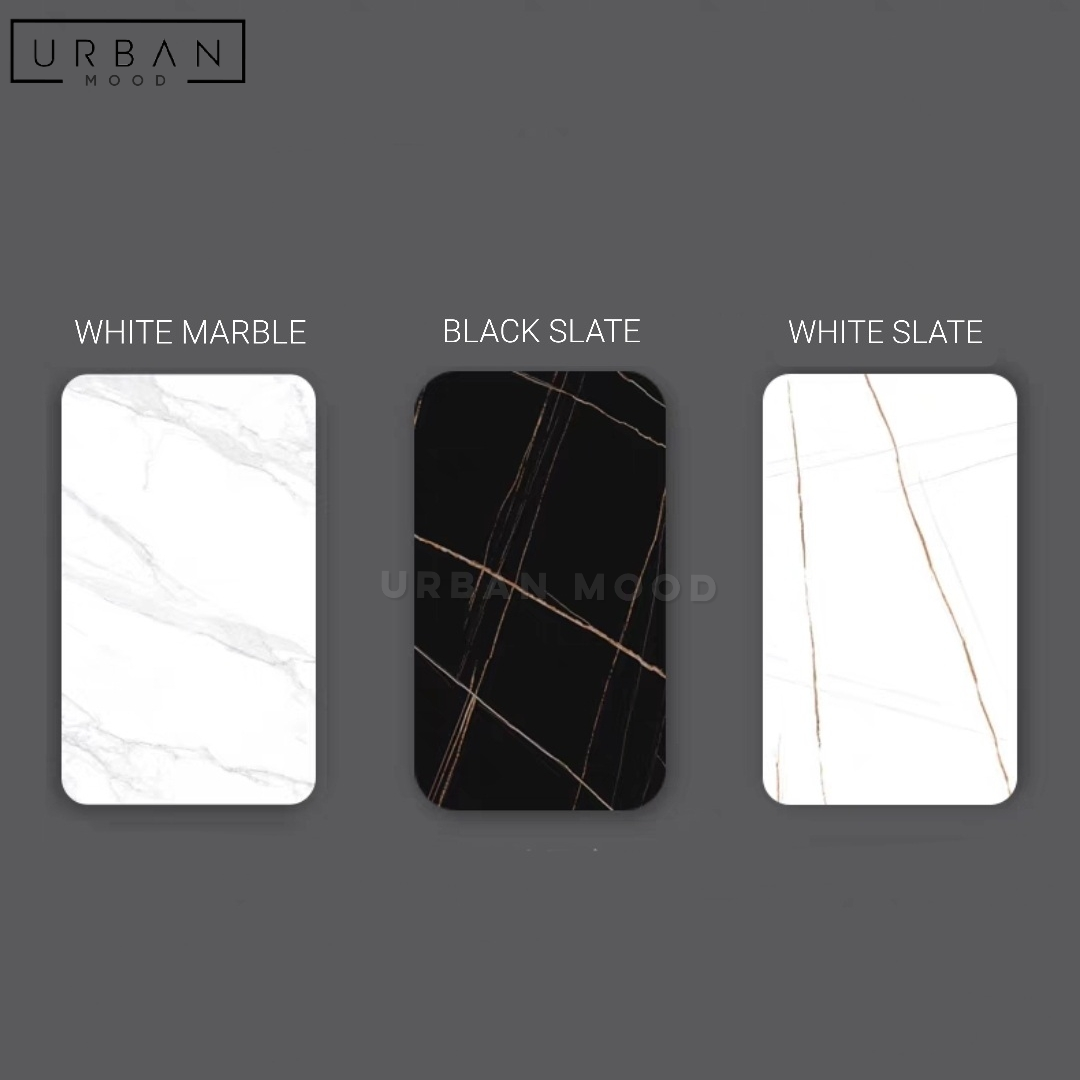 Constructed from high quality pine wood and sintered stone, the STUCCO sideboard features both drawers and casement doors which open to tiers of open shelving. Backlit LED provides illumination through tempered glass doors, adding a touch of sophistication. The monochrome colour combination will elevate any modern or hotel-luxury themed family room, dining room, or bedroom.