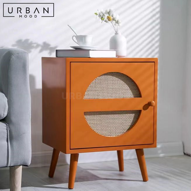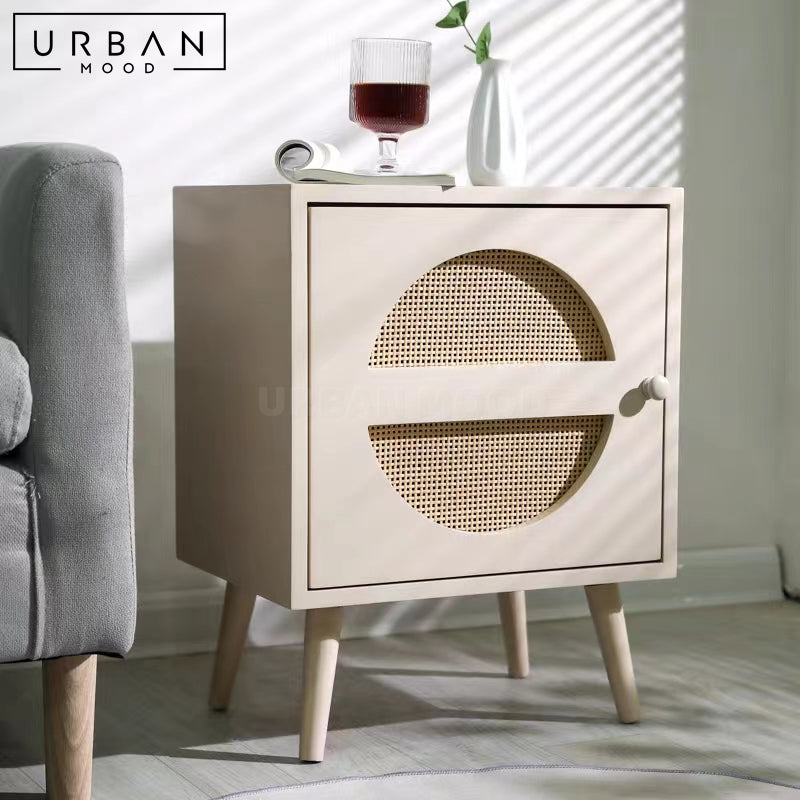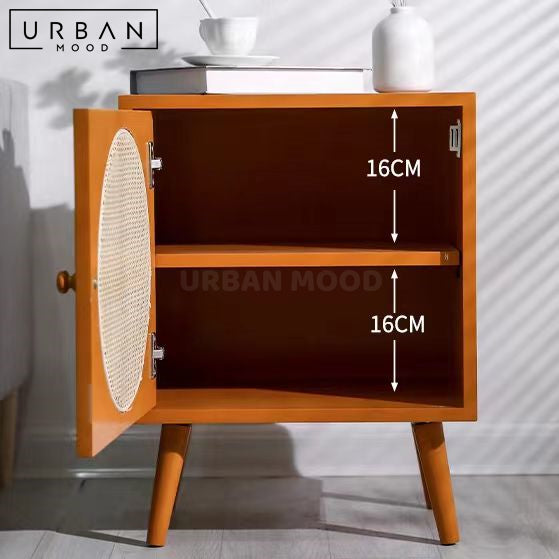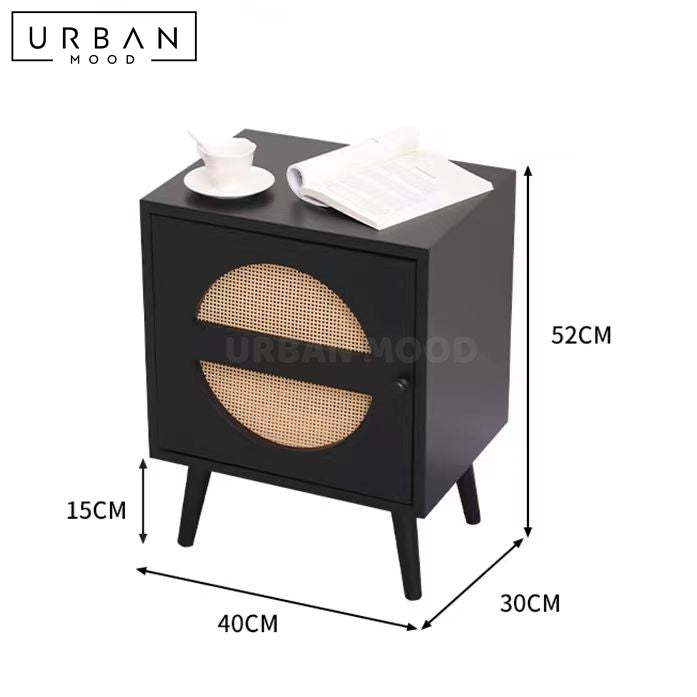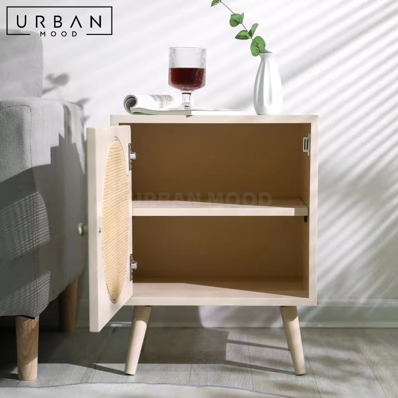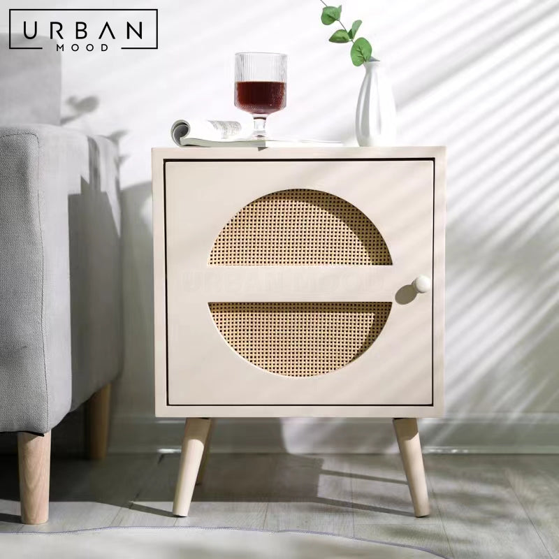 Featuring a delightful rattan-clad door, our TIMMS bedside table is built in a compact size, making it a perfect fit for smaller spaces while offering convenient storage for your nighttime essentials. A cute accent piece to add to your bedroom ensemble, this side table will upgrade your sleeping sanctuary. Available in a range of colors to complement any modern, minimalist, or eclectic bedroom.